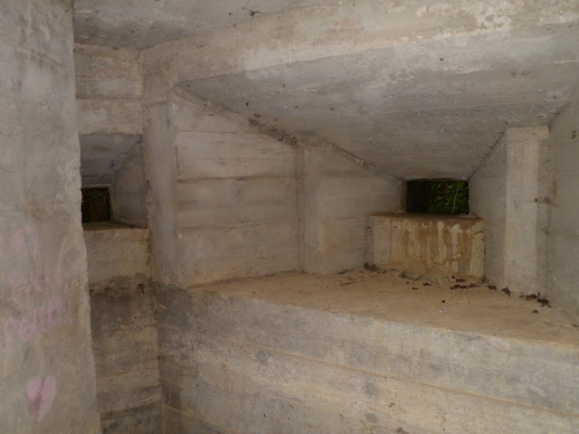 This is where it got interesting. Thankfully i spoke to the farmers wife and explained what i was up to. The pillbox i wished to view was in the adjoining property but was buried. After it was explained that the pillbox was being converted into some weird kind of Celtic storage area!!!, this lady kindly led me up to the builder who was doing this rather sad conversion. I was allowed to go in to view the pillbox. The gun embrasure would have been southern facing but is completely bricked and skimmed now. Some of the internals are still evident so i photographed those amongst the clutter. I shall keep my opinions out of this one but you can imagine my thoughts.